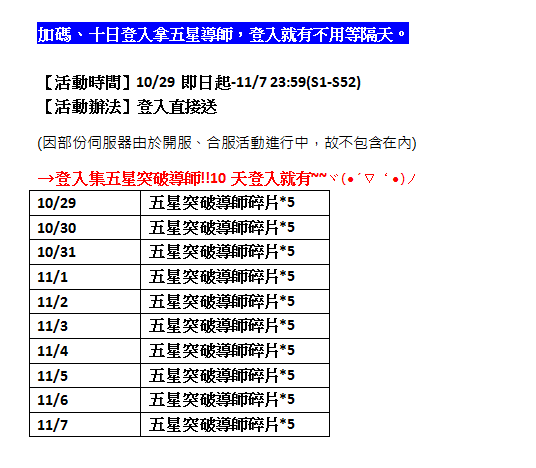 標 題《進擊吧!勇者》加碼、十日登入拿五星導師,登入就有不用等隔天。