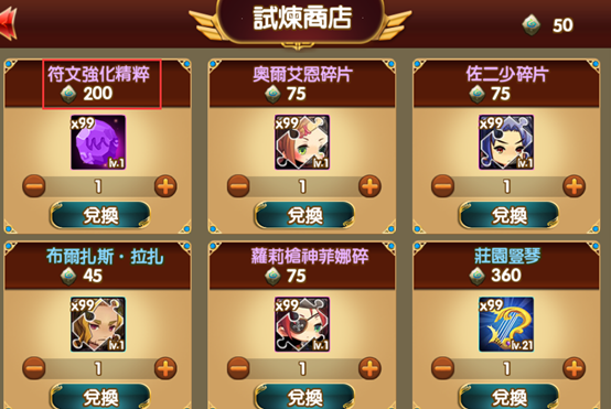 2.增加新道具:符文強化精粹(可被符文吞噬,升級符文)符文精粹可在試煉商店使用試煉魔晶兌換獲得。